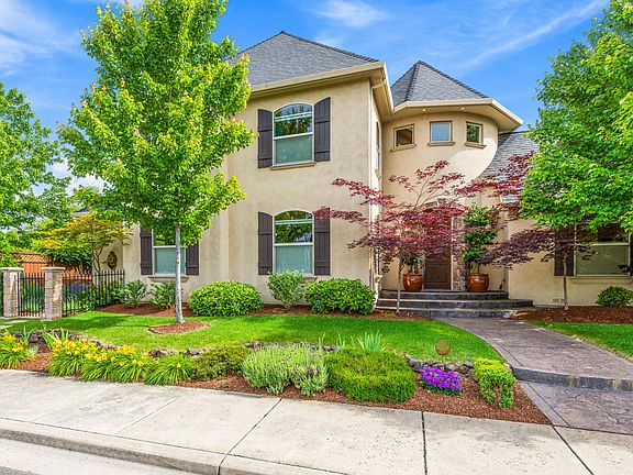 Enter to a sweeping spiral staircase leading to the 2nd floor of this 4 bed 3 bath luxury home. Having 3,185 sq ft of living & entertaining space, you will sense that this property was designed with entertaining in mind. The Mediterranean kitchen is complete with Granite countertops, 2 ovens & island allowing plenty of space for creating a favorite meal with family & friends. Step into the formal dining room with 20 ft ceiling, built in cabinets & serving buffet. This leads you to a cozy family room with a fireplace. Outside is a lovely outdoor pergola dining area with a gas fireplace, perfect for a summer meal. The backyard also includes a cozy sitting area where you can enjoy the thoughtfully designed garden. Main floor living includes a den, guest bedroom & office. Upstairs you will find a large master suite with gas fireplace, walk-in shower, jetted tub, large walk-in closet & 2 additional bedrooms.