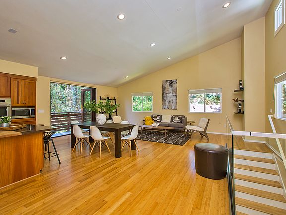 Totally rebuilt in 2011, this sophisticated Montclair Hills home captures the essence of nature in a contemporary setting! Enjoy the woodland quiet from this modern home that features an open LR/DR/kitchen plus powder room on the main floor, with 2 master suites, a third bedroom, & family room on lower levels. The chef's kitchen includes SS professional appliances & beautiful cherry cabinets. Premium finishes include a vaulted ceiling, bamboo floors, granite, quartz & butcher block counters & walk-in closets. Every room has a balcony with a view of the woods & the canyon below. Just minutes from Montclair Village shopping & restaurants, UC Berkeley, & the spectacular trails of Sibley Regional Preserve. Close to Rockridge BART & local freeways. This home is truly special!
