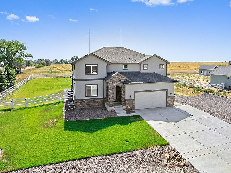 At only 6 months old, this semi-custom brick and stucco home on .63 acres. What a find! Fully fenced corner lot with great views. Fabulous gourmet kitchen with solid slab granite, 42" Alder Mission style cabs, subway tile and large pantry. Hand troweled texture, blinds and gorgeous fixtures throughout. Large mudroom provides separation from 1/2 bath and garage from living area. Main floor has hand scraped engineered flooring throughout. Upper level has 3 full bedrooms, 3 baths, large laundry room and loft. Master bedroom is spacious with large bathroom, walk-in shower and massive closet with built-ins. Oversized 3 car tandem garage with roll-up door at back of garage. $23k in new landscaping. Full unfinished basement for storage or future expansion. Enjoy the quiet country living from your covered east facing back patio. Don't miss this unique opportunity.