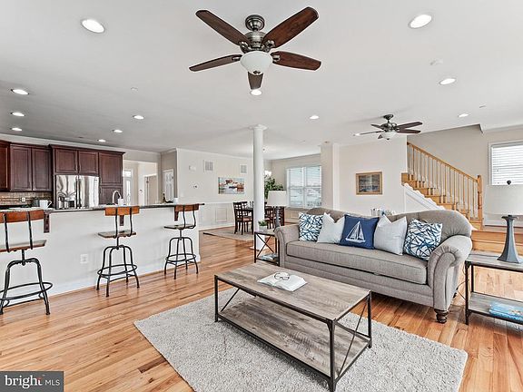 STUNNING WATER FRONT PROPERTY!! Tour This Custom Build Home With 4 Bedrooms, 3 Full Bathrooms, 2 Car Garage & Gorgeous Water Views From The Deck. On Main Level, You'll Admire The Open Floor Concept With Hardwood Floors, Living Room With Electric Fireplace & Deck That Overlooks Back River. This Chef's Kitchen Includes Tons of Cabinet Space, Granite Counter Tops, Gas Stove, Kitchen Island & Breakfast Bar, Dishwasher, Built In Wine Rack, & Recessed Lighting. Main Level Bedroom Can Be Office Potential. Upper Level Has 3 Spacious Bedrooms Including Master Bedroom En Suite With His & Her Walk In Closet, Dual Vanity Sink, Jacuzzi Tub W/ Separate Stand Up Shower, Tray Ceilings, Recessed Lighting & Water View. Lower Level Has Bonus Great Room & 2 Car Garage! Home Comes With 1 Year Home Warranty Not To Exceed $550!