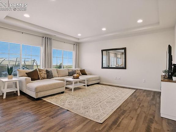 Welcome to a bright and stylish two-story gem in the heart of Colorado Springs’ coveted Banning Lewis Ranch. Built in 2021, this 3-bed (plus dedicated office AND loft), 3-bath beauty blends modern design with easy living, offering over 2,250 sq ft of well-thought-out above grade space backing to open space and fields with mountain views. This one lives large since all rooms are spacious and bright in the award winning Yampa model and it is in impeccable condition - better than new! The home has been completely pet free and extremely well-kept! Step inside and feel instantly at home in the open-concept layout filled with natural light. The main level boasts a welcoming entry, spacious living area, and a sleek kitchen featuring stainless steel appliances, ample cabinetry, an enormous island, and plenty of room to cook, dine, and entertain with ease. Also, you'll love having a dedicated half bath and a great office or guest room to round out the main level. Upstairs, you’ll find three roomy dedicated bedrooms, including a luxe primary suite with a spa-like bathroom, dual sinks, walk-in shower, and a generous walk-in closet. Bonus: the laundry room is upstairs right where it is most convenient. Outside, enjoy a fully fenced backyard made for relaxing or hosting, plus low-maintenance landscaping so you can spend weekends unwinding, not weeding. Energy-efficient features, central A/C, mountain views, and a 2-car garage with a dedicated 220 outlet round out the perks. Living in Banning Lewis Ranch means more than just a great home—you get access to a vibrant lifestyle. Dive into miles of scenic trails, pools with a water park, a fitness center, tennis courts, dog parks, and year-round community events. Top-rated D49 schools, parks, shops, and dining are all close by, with easy access to Powers, I-25, and local military bases. Why settle when you can upgrade to an energy efficient gorgeous home!? Come see today and discover where comfort meets community and style.