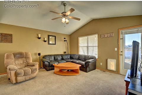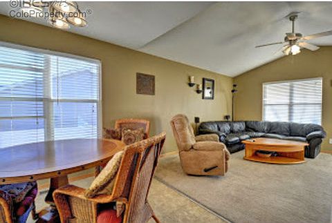 A nice ranch home that sits on .25 acre lot in Wellington. A large cement pad on the back of the home to enjoy your time on. Great views of the foothills, walking distance to Rice. Eat-in kitchen area, open living room with ceiling fan. The master bedroom is complete with full master bath. Unfinished basement with rough-in bath.