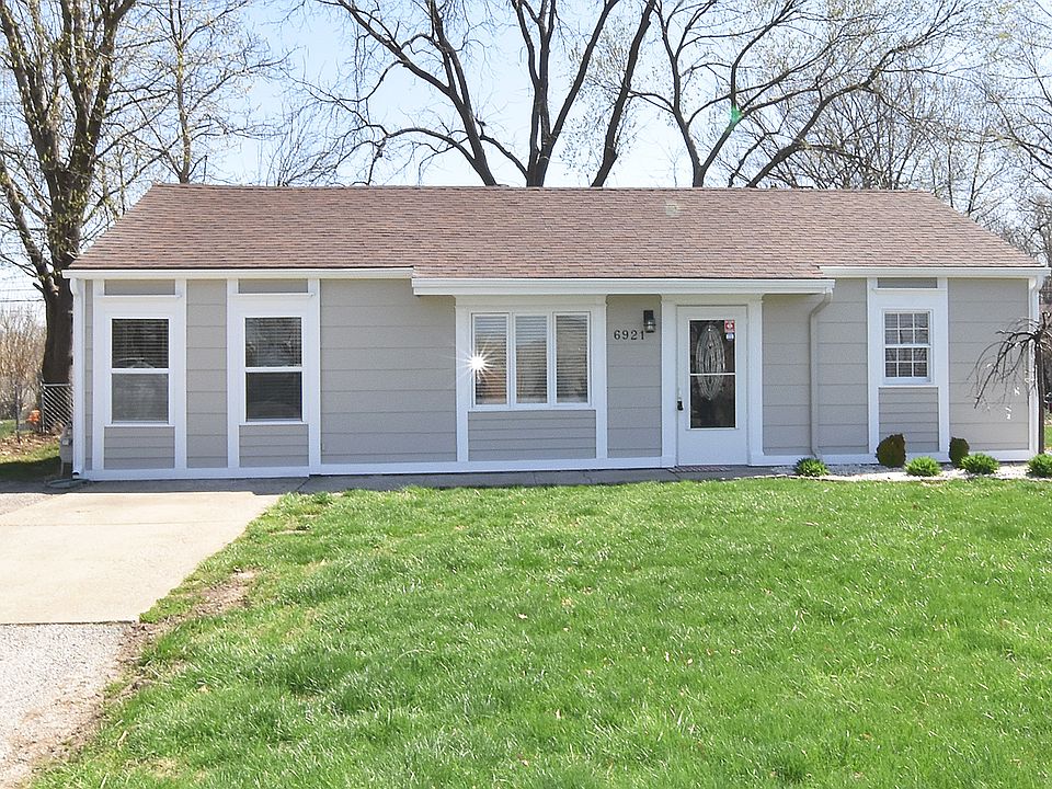 Cute Clean and Ready for new buyers! My opinion-has to be one of the best streets in Gladstone-directly across from the Community Center and Parks. House has been freshly painted inside and out. No steps-easy access through front door and easy access to backyard. Lot is nice and flat with mature trees. Double drive for parking and guest. Nice fenced in backyard with shed for extra storage.