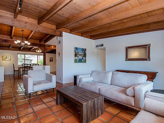 Old Tucson meets updated convenience in this 3,113 sqft Casas Adobes charmer on nearly an acre. Brick walls, recently refinished Saltillo floors, gorgeous beamed ceilings, recent interior/exterior painting. Updated kitchen w/HUGE walk-in pantry, 3 beds+ bonus/rec room with flex space and separate entrance (could become 2nd primary bedroom or in-law suite); zoned AC/heat, 2 water heaters, 700 sqft primary bedroom with enormous walk-in closet and beehive fireplace; fully fenced resort-like backyard-entertainers dream with pool/spa, built-in BBQ and pergola. Large 3-car garage with built-in storage. Conveniently located to shops, restaurants and great schools.