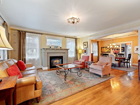 Stunning and spacious contemporary Craftsman-style home in wonderful Multnomah Village. How can such a big house be so cozy? Modern construction with vintage design - stained glass, box beams, hardwood floors. Kitchen features a 6 burner Wolf range, large island with seating and storage galore, all open to the dining room, living room and den, perfect for entertaining and everyday living. Upstairs includes a large flexible loft and a convenient laundry room. Huge finished basement with high ceilings, bedroom and bath offers many possibilities. New furnace, new dishwasher. Professionally landscaped backyard with charming pergola is a lovely blooming retreat. The long driveway provides plenty of parking plus an EV charger. Stroll, roll or ride to the dynamic center of Multnomah Village, the fun at Gabriel Park and the Hillsdale shopping center. All in all, a fantastic home! [Home Energy Score = 6. HES Report at https://rpt.greenbuildingregistry.com/hes/OR10213338]