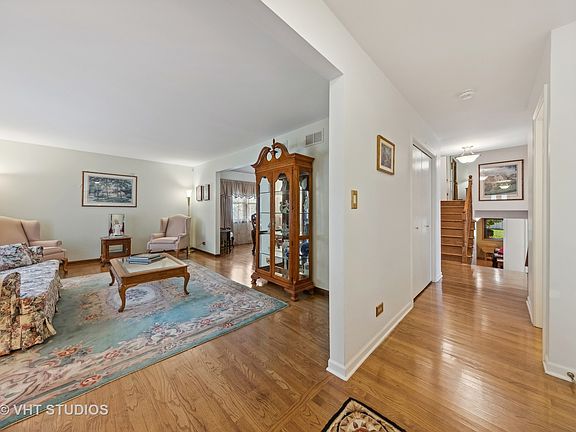 Welcome to this spacious 4-bedroom, 3.1-bath split-level home designed for entertainment with a large finished sub-basement. As you step inside, you'll find a large foyer leading directly into the formal living and dining rooms. The centrally located eat-in kitchen features ample counter space and cabinets. Upstairs, the primary bedroom with an updated ensuite bath provides a retreat, while two additional bedrooms share a beautifully appointed hall bathroom. The expansive lower level family room is an entertainer's dream with pristine wood laminate floors, a stone surround gas fireplace, built-in speaker system, and a built-in bar equipped with a kegerator and wine fridge. A fourth bedroom, currently used as an office, is conveniently located across from a full updated bathroom. The finished sub-basement offers versatility with a carpeted rec room and a vinyl plank laundry room, along with ample crawl space for all your storage needs. Step through the sliding glass door from the kitchen onto a spacious patio, offering an outdoor living area perfect for dining or unwinding in your private hot tub under the stars. The fenced yard showcases mature landscaping and direct access to O'Brien Park. Additional features include hardwood floors throughout the main and second levels, a gutter guard system, and a natural gas line for your grill.