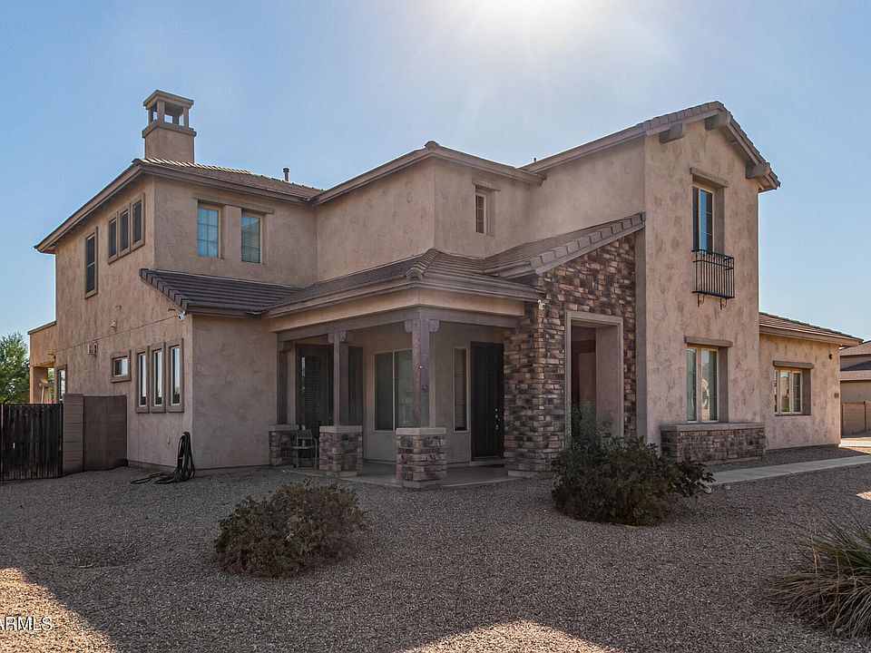 Stunning Horse Property! 1 acre lot, 24 foot entry. Salt water Pool with remote controlled lights, water slide, attached Grotto in pool, cave under grotto seats 6 persons, ''10 person spa Included'' Solar leased, Kitchen Granite Counters, Cherry spice raised 42 inch cabinets with crown molding, large walk in pantry with a door. Build in Granite Island, stainless steel appliances all included. Dramatic Stairway, primary is upstairs, Master bedroom suite with jetted tub, separate shower, private toilet, spacious walk in closet. Loft upstairs. Garage has 4 plus spaces insulated. The casita has private entrance, own ac. Sprinklers throughout, Security system, 8 cameras around the property. 3 front doors. Seller needs 15 days to move.