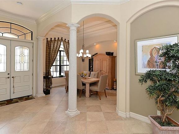 - Interior Features: Ceiling Fans(s), High Ceiling(s), Living Room/Dining Room Combo, Master Bedroom Downstairs, Split Bedroom, Crown Molding, Walk-In Closet(s), Window Treatments, Solid Wood Cabinets, Eating Space In Kitchen, Kitchen/Family Room Combo, Dry Bar, Wet Bar, Stone Counters, Tray Ceiling(s), In Wall Pest System