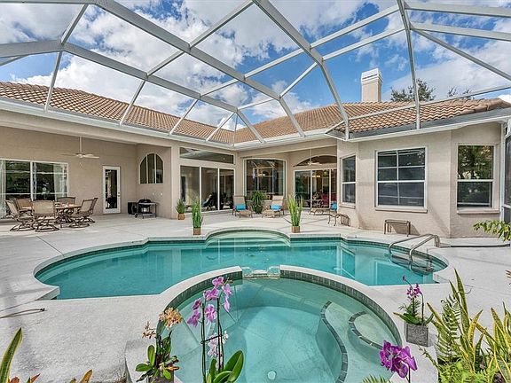 County club living in culturally rich Sarasota. Discover a refined way of living at University Park Country Club, where gated luxury meets a delightful blend of community, recreation, culture and convenient location west of Interstate 75. Thrive on year-round access to 27 holes of four-star golf, four pickleball courts, 11 Har-Tru lighted courts with competitive league play, fitness center, recreational paths through mature lush landscaping, and a vibrant social calendar welcoming you into the community where new friendships begin. A casual favorite of the club is the outdoor patio bar and grill with serene views of the lake and golf course. This is the community setting to our luxury waterfront sun-filled residence, sited on an oversized lot with mature landscaping and lake view. Built in 2003 by Pat Neal, the home enjoys oversized windows and sliding glass doors opening to the screened pool patio area, a 2020 roof, 10-foot ceilings, all lending to a secure sunny, airy Florida feel. The intelligent split floor plan surprises you with a large bonus room in the rear of the house with sliding glass doors to the pool and a big window facing the trees. There is a wonderful flow between the living room and the kitchen family room, keeping it separate and open. It gives space for guests and places to simply be. The kitchen serves as heart of the home with a center island, breakfast bar, dry bar connecting to the dining room and a delightful breakfast area with a glistening view of the lake. The guest wing offers two bedrooms, a sunny bonus room and two full hallway baths. The primary suite has two walk-in closets, separate vanities, tub, a walk-in shower and water closet. The large bedroom has a sitting area and a door accessing the pool patio. The pool patio has a covered area for shade and open areas for sunning, a spa, heated pool and a swim-in-place pool mechanism for exercise. Location is mere minutes to all shopping, restaurants, Benderson Park, Mote Marine and seven miles to downtown Sarasota, the heart of the Cultural Coast of Florida with café-lined streets, live theatre, music and art festivals, ballet, opera, museums, colleges, marinas and waterfront parks. Come live the dream!