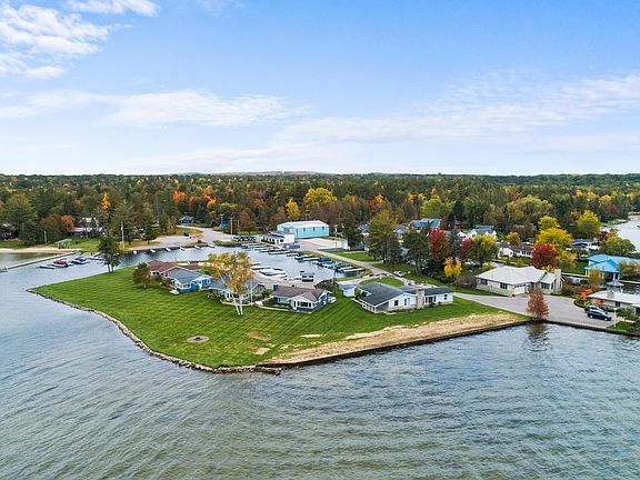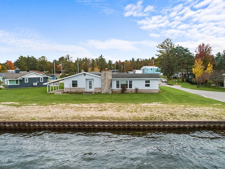 This Burt Lake waterfront home provides some of the best views on the entire lake. Uniquely positioned at McGrew's Point on the lake's southern shore, this 3 bedroom, 2 bath home with 227' of sand frontage is protected by a full width seawall. The open living space includes a living room, dining room and kitchen all with direct water views. The covered porch is accessed from the remodeled kitchen allowing for many outdoor meals while watching boats pass by or evening sunsets. The large front yard, attached garage, cut stone fireplace, paved driveway are just a few of the many features. This location, so close to downtown Indian River, is convenient to shopping and restaurants.