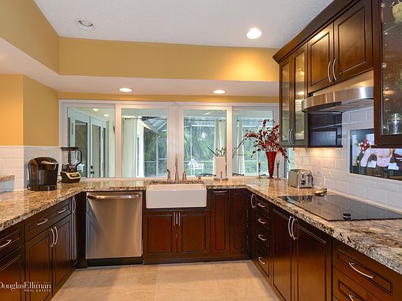 Fantastic corner lot home nestled in lush landscaping with a beautiful, private screened in pool. Remodeled kitchen with dark cabinetry, stainless appliances and stunning granite countertops. Great split bedroom floor plan with vaulted ceilings for ideal family living. Outdoor kitchen, a wonderful feature for Florida lifestyle. This home is close to the Estancia South private park and Estancia trails. Impact Windows through out. Hurry! This one won't last!