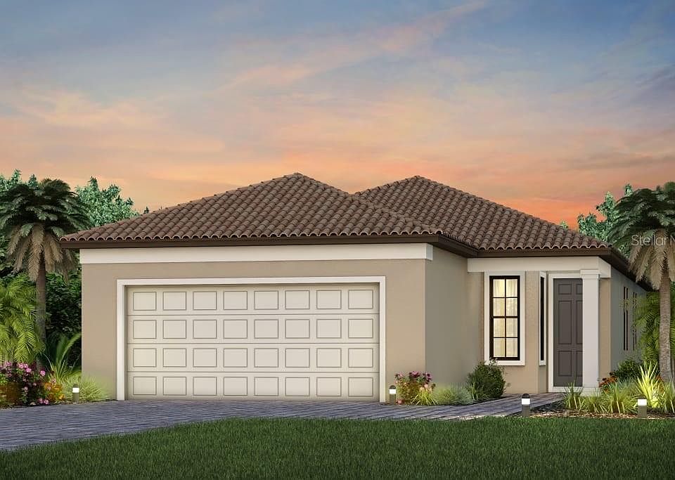 Under Construction. This Compass home with water views features stainless gas appliances, stylish backsplash tile, quartz counters, porcelain tile floors in main living, den, covered lanai & more! ***Pictures are for illustration purposes only, options may vary.