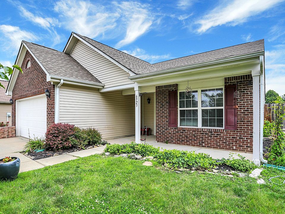 Check out this spacious 3 bed 2 Bath ranch in Camby! The well-appointed eat-in kitchen, boasting plentiful cabinetry, and a convenient breakfast bar. Front room den provides a versatile space, perfect for crafting a home office, playroom, or relaxation area. One of the key highlights of this residence is the handicap accessible primary suite. Thoughtfully designed with wider doorways and en-suite bathroom. Stepping out back you'll discover a fenced yard, providing privacy and security for outdoor enjoyment. This home backs up to lots of green space with the neighbor behind. Roof replaced 2019. Don't miss out on the opportunity to call 6923 Percy Drive your own!