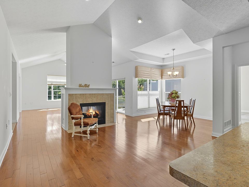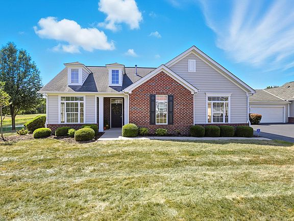 Darling ranch condo located in New Albany - The Woods at Sugar Run. The condo is situated close to a pond - nice views from the house and patio. Condo offers an open floor plan, eat-in-kitchen, stainless-steel appliances, two bedrooms., two bathrooms, en-suite bedroom has a large walk-in shower which is tiled and a walk- in closet, a study or office, great room with Cathedral ceilings, dining room and little sitting area by the double fireplace. First floor laundry. Hardwood floors. Sellers installed several new windows costing $7,000.Beautiful patio great for entertaining or morning coffee. Attached two car garage with a pull-down access for storage - you can stand up in the attic storage area and well lit. Club house featuring pool and health center. Walking path to shopping and dining out. The home has been freshly painted the ceilings and walls. The only rooms that have not been painted - the blue office and laundry room. The taxes are Columbus taxes not New Albany taxes. Call today for your appointment!
