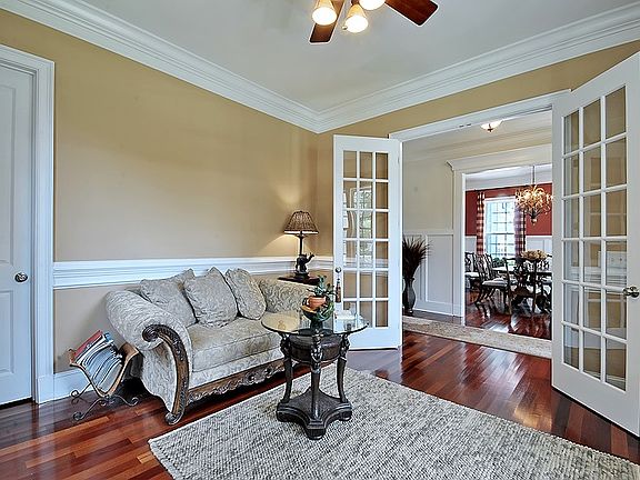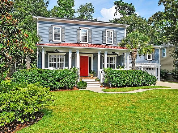 Approaching the front door, you are greeted by the expansive full front porch displaying an attractive red metal roof. Many features set this home apart from the rest. Upon entering, you will notice the wide entryway featuring Brazilian cherry wood floors and soaring 10 ft. ceilings, accented with heavy crown molding and chair railing. The main floor consists of a formal dining room, an office or formal living room with French doors and ample closet space (could be a 5th bedroom if desired), and the grand living room and kitchen which are open and full of natural light! The living room features a gas fireplace framed by built-in bookshelves, and French doors leading to the outside deck and grilling area. The kitchen is an entertainer's paradise, featuring French doors that open to the screened porch creating the perfect place for an outside dinner! Kitchen consists of custom cabinets, a grand center island with barstools and wine rack looking into the living area; beautiful granite countertops, brand new tile backsplash with under-cabinet lighting, and stainless steel appliances. In between the kitchen and the dining room lies the butler's pantry, complete with glass front cabinetry and more granite counter space. Just off the butler's pantry are stairs leading to the expansive FROG/flex room, which could also be used as a mother-in-law suite, complete with a full bathroom. Brazilian cherry stairs lead up to the 2nd floor, where you'll find the Master suite, two additional bedrooms, a full bathroom, and a laundry/mud room with washer and dryer that CONVEY. The master suite runs the entire length of the backside of the house, and consists of a huge walk-in closet; Master bath featuring ceramic tile flooring, his and hers vanities, garden tub, and separate tile shower with glass door. The 2 bedrooms upstairs have big closets, making for plenty of storage space. Upstairs full bath consists of white and black tile and white cabinetry, creating a very clean and contemporary feel. There are 9 ft. ceilings throughout the 2nd floor. This home has a very private feel with woods bordering the back of the property, and a nice patio sitting area just off the back deck that is surrounded by trees for afternoon shade. Also on the back deck, there is a natural gas grill connection, so no need for propane tanks! The yard features mature landscaping and St. Augustine grass. Attached 2-car garage is in showroom condition, and consists of an extra refrigerator, freezer, and cabinetry that ALL CONVEY. You really must see the quality of this home to truly appreciate all it has to offer! Conveniently located close to Boeing, Trident, and I-526. Tanner Hall has a private neighborhood boat ramp and crabbing dock, as well as an amenity center with pool and tennis courts! Walk to the grocery store, fitness facility, shopping and dining.
