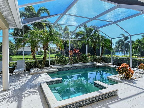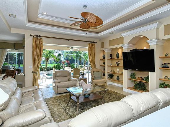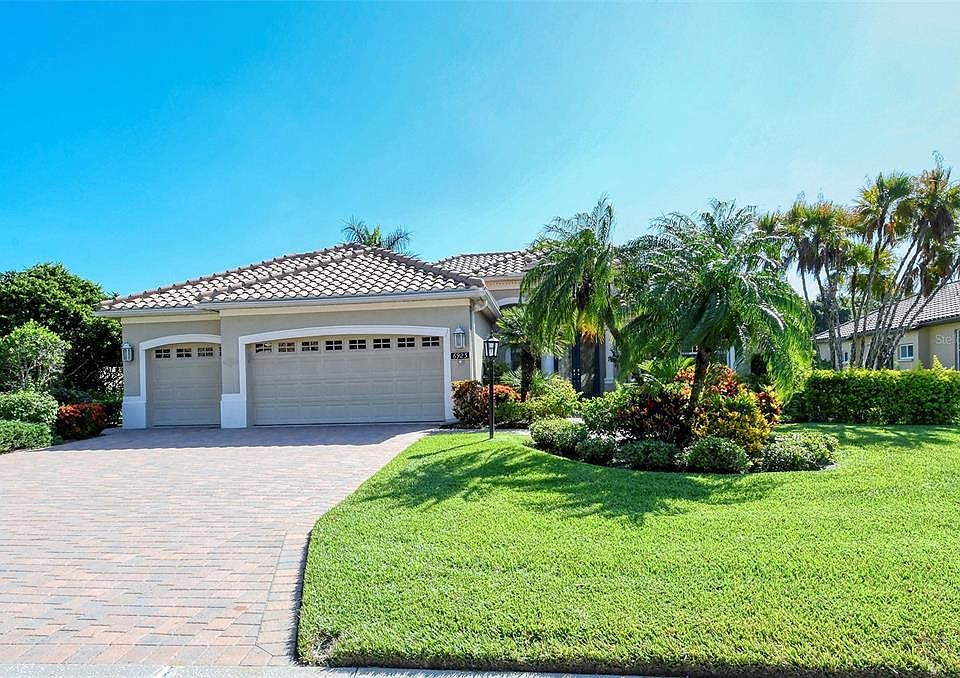 Welcome to highly sought after and gated Treymore. This lakefront former Lee Wetherington Monterrey II former model is bursting with upgrades and being sold completely turnkey furnished. Boasting four bedrooms and three baths, this great room plan enjoys a beautiful heated pool, spa and outdoor kitchen as well as a three car garage. New roof 2021, hot water heater 2018, concrete driveway and front walkway have been replaced with gorgeous pavers, and pool/spa deck has been upgraded to travertine. This gated community enjoys an outstanding location being just a short golf cart ride to the optional and private Palm Aire Country Club offering golf, tennis, pickleball, and social memberships. Just minutes away is the University Parkway corridor, UTC Mall, SRQ Airport, and downtown Sarasota. Ready for immediate occupancy....just bring your toothbrush. Don't miss it!