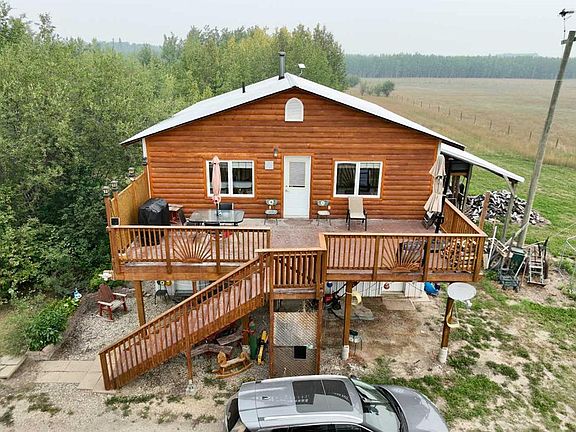 This 147.99-acre property offers the perfect mix of rural living and functionality. Located on a quiet dead-end road, the land is fully fenced and well-suited for ranching cattle or horses, with two dugouts providing water and ample pasture. Additional features include underground power, a garden, established fruit trees, a custom insulated chicken coop with power and a secure pen, a second set of services for an RV or future second home, and a lean-to dry storage area attached to the east side of the house. The 1,200 sq. ft. two-story shouse-style home combines comfortable living with practical space. The ground level includes partially finished living space along with a shop and storage area, while the upper level boasts a bright kitchen with an island, dining area, spacious living room with a wood stove, two bedrooms, a full bathroom, and laundry. Patio door off the kitchen lead to a large raised deck with beautiful views of the surrounding countryside. The property also generates additional income with $1,750 annually from a riser and $3,000 yearly from pasture rental. With the potential to subdivide the house and yardsite, this acreage is ideal for ranchers, hunters, outdoor enthusiasts, or anyone seeking privacy and country charm with income opportunities.