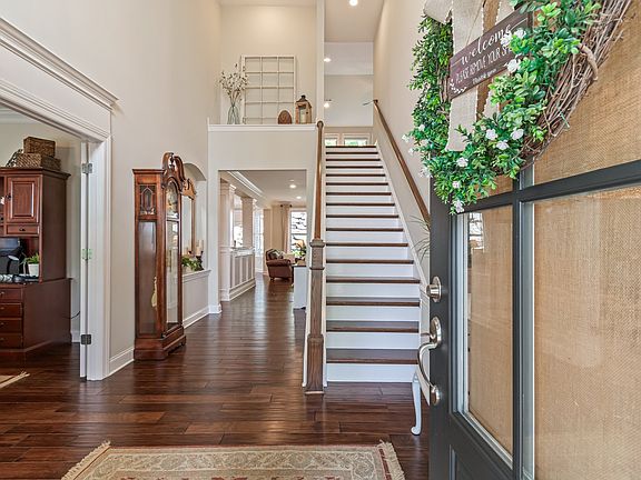 Discover elegance + sophistication nestled on a beautifully manicured lot in the highly sought-after Granbery Elem School + Christiansted Valley neighborhood. This exquisite home sits on a high elevation + boasts 4 beds/3.5 baths + a spacious 3399sqft of living space w/ a 3-car garage. You'll be captivated by the meticulous attention to detail, w/ plantation shutters, custom woodworking + molding throughout + an abundance of natural light. Recessed lighting illuminates the space, highlighting a chef's dream kitchen, w/ granite countertops, a travertine natural stone backsplash, a gas stove, soft-close drawers/cabinets throughout, + custom woodwork adorning the island. The expansive primary suite is a true sanctuary, featuring his + her closets, + an en-suite bathroom w/ a grand soaking tub. A dedicated office provides the perfect WFH space. The irrigation system ensures lush landscape to enjoy your covered patio ideal for outdoor relaxation.