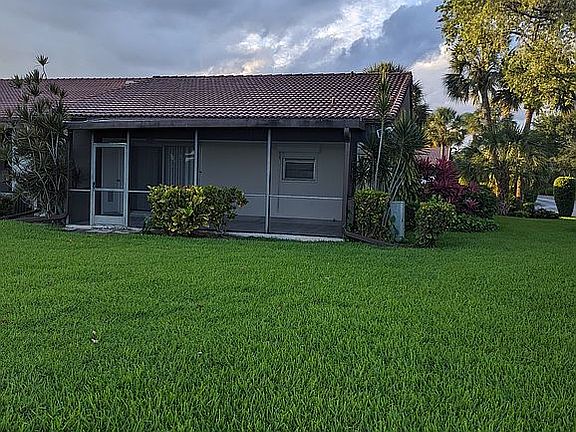 MOTIVATED SELLER! Don't miss your chance to own this one-story villa in desirable Boca Del Mar area. This 2BD/2BA corner unit in Tiburon I features neutral tile floors throughout, a large screened-in patio with wood-look tile overlooking expansive green space, separate storage room off patio, galley kitchen with washer/dryer and a pass-through to the dining room and window overlooking the patio/grounds, newer AC, ensuite bath in primary bedroom with walk-in shower. Unit comes with 2 parking spaces directly outside the front door. All age community with low HOA fees that includes cable. One pet up to 20 lbs. allowed; no lease for the first three years. Top-rated schools, close to shopping, dining, and entertainment.