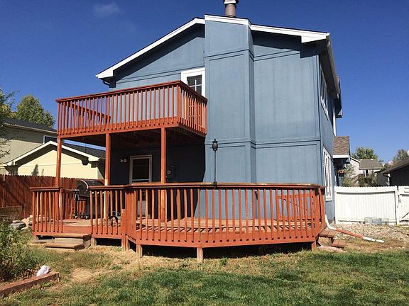 Well Maintained Northcrest Home on Large .30 Acre Corner Lot~Newer Roof, Water Heater, Exterior Paint~Central Air~Tile Entry~Powder Bath~Formal LR/DR~Kitchen Opens to w/Eat-In Nook~Mud Room to Backyard Deck~Lg FR Open to the Kitchen has Wood Burning FP, Stone Surround & Hearth~Upper MBR has Walk-In Closet, Upper Laundry, Attached Bathroom & Walk-Out to Private Deck~Hall Bath w/Tiled Tub/Shower~2 More Upper BRs~Detached 2-Car Garage~Lg Fenced Backyard w/Deck & Shed~D49 Schools~Close to Shopping, Entertainment, Peterson AFB. MOVE-IN READY! Don't miss this great 2-story home on a huge .30 acre corner lot in the Powers Corridor/Northcrest neighborhood. Formal Living Room and Dining Room w/lighted ceiling fan and mirror accent wall. Powder Bath has a tile floor. Light and bright Kitchen features wood laminate floors and white cabinets w/granite look countertops. Appliances include a dishwasher, refrigerator and newer smooth top range oven. Kitchen extends to an eat-in Nook. There is a spacious Family Room off the Kitchen that features a wood burning fireplace w/raised hearth, mantle and stone surround. The Mud Room has tile floors, built-in cabinets and a storm door out to the backyard deck. Upstairs hosts the spacious MBR which features a lighted ceiling fan, walk-in closet, adjoining Master Bathroom w/tiled tub/shower, and walk-out to a private UL deck. Upper level laundry. Updated hall bathroom boasts tiled tub/shower. 2 more bedrooms are found upstairs. Newer roof, water heater & exterior paint. Central air. Detached 2-car garage. Fenced level backyard w/deck for outdoor fun and storage shed for tools and toys. Auto sprinklers in the front yard. Conveniently located near Constitution and Powers Blvd. Close to military bases, Powers corridor shopping, and D49 schools.