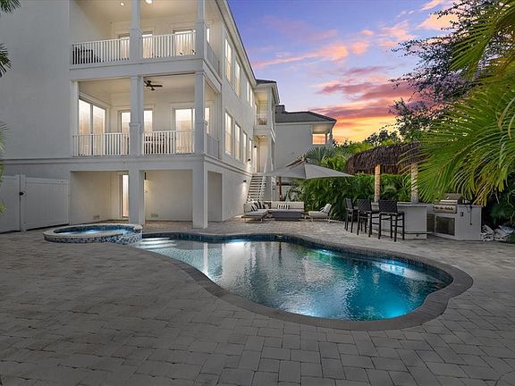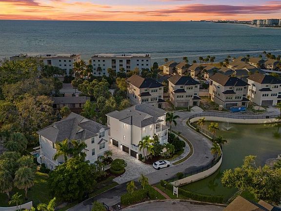 Welcome to La Linda Siesta Key Estates, an exclusive gated enclave that defines the pinnacle of coastal luxury living. Just one block from the sparkling waters of Siesta Key, this custom-built, three-story masterpiece spans 3,796 square feet and offers 4 bedrooms, 4.5 baths, a private elevator, and a spacious 4-car garage, a rare feature on the island. Designed with both elegance and endurance in mind, this home is constructed with solid concrete block, impact-rated windows and doors, and superior structural integrity to withstand even the wildest forces of Mother Nature. Despite recent storms in the area, this residence remained completely unaffected, a true testament to its exceptional build quality and engineering. Inside, every inch of the home showcases high-end custom craftsmanship, from exquisite flooring and designer lighting to handcrafted cabinetry and architectural detailing that exude sophistication. The gourmet kitchen is a show-stopping centerpiece, featuring premium appliances, quartz countertops, and a large island perfect for entertaining. The open-concept living spaces flow effortlessly onto multiple balconies and outdoor areas, blurring the line between interior comfort and the beauty of the Florida coast. Each bedroom offers its own private en-suite bath, while the primary suite boasts a spa-inspired bathroom, expansive walk-in closets, and a private terrace ideal for morning coffee or evening sunsets. Step outside to your personal resort-style paradise, complete with a heated pool and spa, custom tiki bar, and private putting green, all surrounded by lush tropical landscaping designed for both privacy and pleasure. Perfectly positioned near Ocean Boulevard and the Village of Siesta Key, you’ll enjoy easy access to boutique shopping, award-winning restaurants, and the world-famous Siesta Key Beach. Whether it’s a serene morning walk along the shoreline, a day spent boating on the Gulf, or an evening out in downtown Sarasota, this home embodies the ultimate coastal lifestyle-luxurious, resilient, and truly unforgettable.