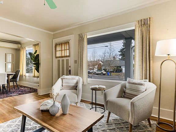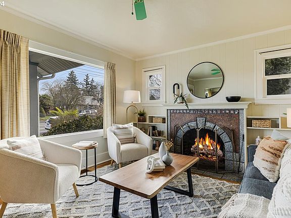 Welcome to this delightful 3-bedroom, 1-bathroom 1927 bungalow, nestled in the classic Arbor Lodge neighborhood. As you enter, you're greeted by a cozy living room, featuring a beautiful fireplace with a classic mantel, perfect for those chilly evenings. This home exudes vintage charm with its original wood floors, classic fireplace, and a kitchen that takes you back in time.. The wood floors throughout the home add warmth and character, complementing the historic feel of the property. The kitchen is a perfect blend of nostalgia and functionality, ideal for whipping up your favorite meals. On the main level you have two bedrooms, both spacious and bright, offering plenty of room for relaxation and rest. The bathroom has been updated with new tile work, adding a touch of modern elegance while maintaining the home's vintage charm. Upper level boasts a third bedroom and a flex space, perfect for a home office, playroom, or additional living area. This layout provides both flexibility and privacy, ideal for just about anybody. The basement offers even more potential, with the opportunity to create a workshop, home office, or additional living space. Outside you'll find a detached garage providing convenient off street parking and additional storage space. A lovely front porch, perfect for enjoying your morning coffee or watching the sunset. The backyard offers space for gardening or outdoor entertaining. Close to parks, shops, and restaurants, this bungalow offers a unique opportunity to own a piece of history. [Home Energy Score = 7. HES Report at https://rpt.greenbuildingregistry.com/hes/OR10225105]