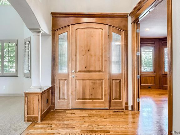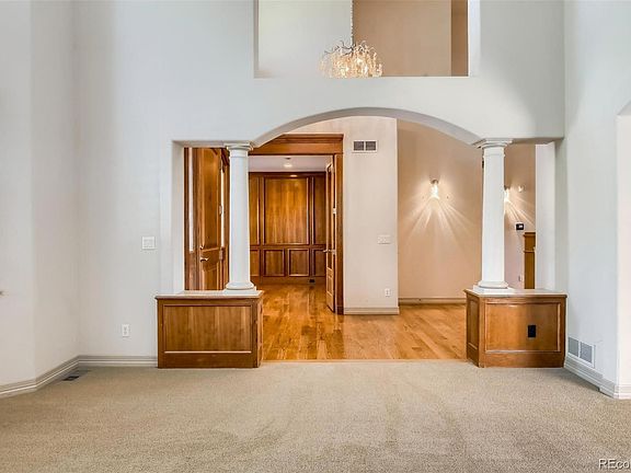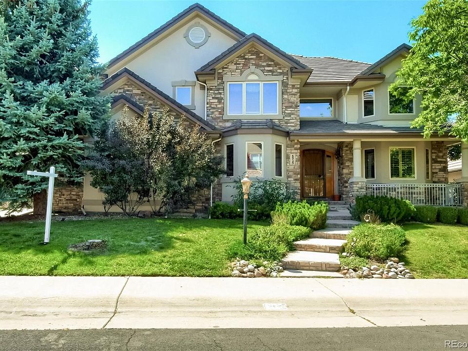 Stunning custom home located on the 17th fairway of Saddle Rock Golf Course. The amazing golf course and mountain views are the icing on the cake of this home. The 2-story foyer leads to a beautiful living room with cathedral ceilings. The dining room has coffered ceilings with back lighting and a butler's pantry with a wine refrigerator. The chefs' style kitchen has a walk-in pantry, cherry cabinets, stainless steel appliances, granite countertops and a large island. The family room has 2 story west facing windows with mountain views. The main floor office is an executive's dream with wood wall coverings and built-in bookcases. Walk out from the kitchen/family room space onto the covered large deck and enjoy the sunsets. Upstairs hosts the primary bedroom suite with a fireplace, huge walk-in closet and a spa bathroom with a steam shower, jetted tub and radiant heated floors. 3 additional bedrooms, each with an en suite bathroom are upstairs and well-spaced for maximum privacy. The finished walk out basement has a large great room with a pool table, wet bar, work out space plus an additional bedroom and 3/4 bathroom. There is plenty of storage space as well. The oversized 4 car garage with built in cabinets provides plenty of parking. This is an amazing opportunity to own one of the finest custom homes on one of the best lots. This is absolutely prime Colorado living!!!!