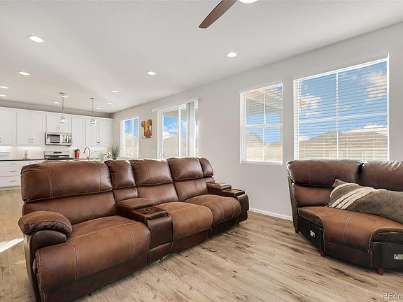 Welcome to this beautifully maintained, like-new, Craftsman-style home in a superb Southshore community and award-winning Cherry Creek Schools! Be greeted as you pull up to a low-maintenance front yard and lovely covered front porch. Step inside to find a bright and airy open layout that’s great for entertaining, enhanced with a crisp and clean color palette, durable laminate wood floors, and an abundance of natural sunlight from many West-facing windows! Home chefs will love the gourmet kitchen with a plethora of white shaker cabinetry, gorgeous quartz countertops, a desirable gas-burning range, and a pretty herringbone patterned tile backsplash. Open the sliding door off the kitchen and Colorado’s amazing sunset views on the upper deck. The nice mudroom area is perfect for winter coats and boots! Head upstairs to the home’s 3 generous-sized bedrooms, including the primary with a spa-inspired 5-piece bath. Full footprint unfinished walk-out basement is ready for you to finish off to your liking, or use unfinished for storage or a home gym. Backyard has new irrigation, grass, and a new concrete patio! Incredible amenities, including nearby community parks and close proximity to Southlands shopping area and Aurora Reservoir with wonderful outdoor activities to enjoy. This move-in-ready gem needs nothing for you to do but move right in and call it home!