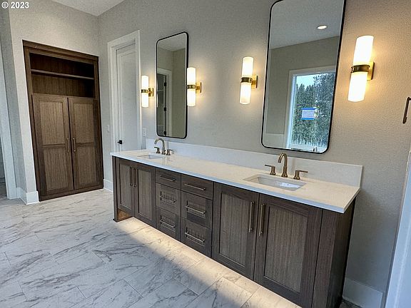 New custom home by most awarded PDX "Street of Dreams" builder! This stunner is tucked away on 4.4 acres near Persimmon Country Club. One level main living w/daylight basement! 3car garage w/ample storage & built-ins throughout! Expansive vaulted outdoor covered living & GR, separate BBQ porch off juice kitchen. Separate guest quarters on main, HUGE laundry. Spa-like Primary Bath! Basement boasts wet bar, party room, FP & exercise area! Pre-wired for whole home gas generator. April completion