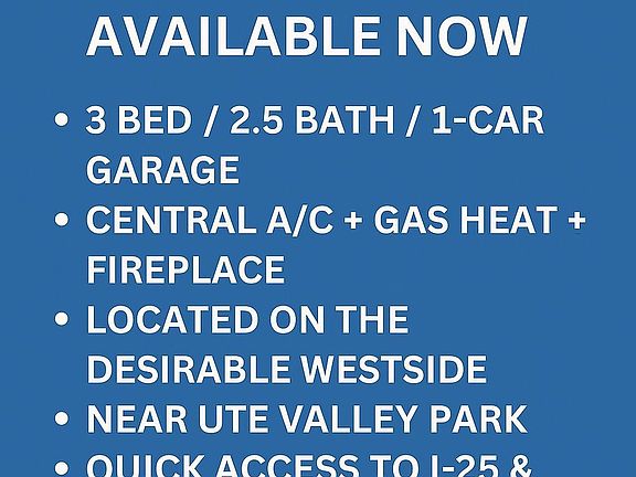 Discover comfort and convenience in this spacious 3-bedroom, 2.5-bath condo located at 6925 Yellowpine Dr, offering over 1,740 sq ft of well-designed living space. With immediate move-in available and a $1,000 rent credit, this is the perfect opportunity to settle into a westside gem. Featuring a large living room, separate dining area, and a thoughtfully designed recreation room, this home provides flexibility for entertaining, relaxing, or working from home. Enjoy a well-equipped kitchen with a dishwasher, microwave, electric stove, refrigerator, and disposal, while washer/dryer hookups and central A/C add everyday convenience. Upstairs you'll find generously sized bedrooms and a spacious primary suite with a private bath. This quiet community is just minutes from Ute Valley Park's stunning trails and offers easy access to local shopping, dining, and Fort Carson (approximately 25 minutes away). The attached garage provides additional storage and protection from the elements. Amenities include: -Central air conditioning and gas heat -Fireplace and window blinds -Carpet and LVP flooring throughout -Attached garage and extra storage space -Washer/dryer hookups -Kitchen with all major appliances -Dining room, recreation room, and spacious living room -Near Ute Valley Park and easy access to Fort Carson Don't miss out on this fantastic property managed by Action Team Realty, proud to hold a 4.5-star Google rating. Schedule your showing today! Check out our virtual walkthrough https app.pixvid. An 11-month lease is required for the first lease. Each renewal thereafter will be 1 year. NO PETS & NO SMOKING Tenant Responsible for All Utilities. The minimum credit score to apply for this unit is 700. 1. A prospective tenant has the right to provide to the landlord a portable tenant screening report, as defined in section 38-12-902(2.5), Colorado Revised Statutes; and 2. If a prospective tenant provides the landlord with a portable tenant screening report, the landlord is prohibited from: Charging the prospective tenant a rental application fee; or Charging the prospective tenant a fee for the landlord to access or use the portable tenant screening report. Please Check Our website for additional pictures and information. By submitting your information on this page you consent to being contacted by the Property Manager and RentEngine via SMS, phone, or email.