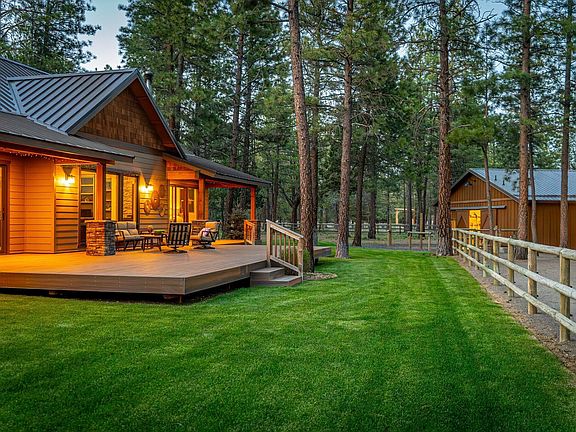 Wake up to see your horses just beyond your deck. Saddle up and ride to the nearby Deschutes National Forest trails! 5-AC equestrian amenities include: 2,000 SF 6-stall barn with covered hay storage, heated tack room, and bathroom; 2 run-outs; outdoor arena; and dry paddocks. Kick off your boots in the mudroom/laundry room- conveniently located off the 1,155 SF 4-car attached garage. The 2nd garage is 1,024 SF with an overhead storage loft. The 2020 custom single-level home features an open floor plan, LVP flooring, 10 ft ceilings, high-end finishes, 3 en-suite bedrooms, and an office with built-ins. The chef's kitchen includes quartzite countertops, tile backsplash, kitchen island, breakfast bar, walk-in pantry, and ample storage/counter space. The luxury primary bath features a soaking tub, dual vanities, a walk-in shower, plus walk-through closet. Tucked into a quiet neighborhood minutes from downtown Sisters, Oregon. Your equestrian location doesn't get any better than this!