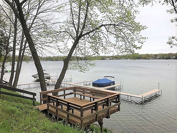 Completely remodeled lakefront condo on full recreational Paddock Lake. In last 4 years seller has added new hardwood floors on entire main floor, cherry kitchen cabinets with granite counters and new appliances. Both bathrooms have been redone with ceramic tile and glass doors. A bonus room was modified for extra room and 2nd mini kitchen/bar area. Beautiful get away place with your own pier space on the lake. 1 car detached garage space for extra storage or parking. Complex has plenty of open space along the lake to walk or just relax on the lakeside deck. Just come in an enjoy this one.