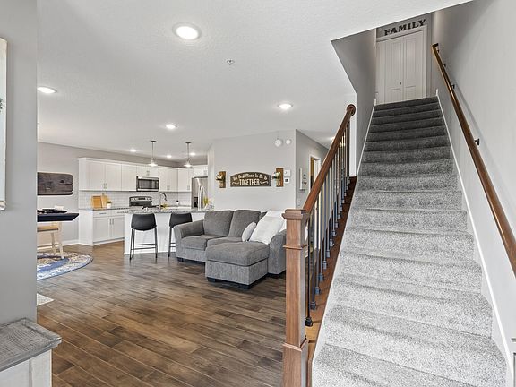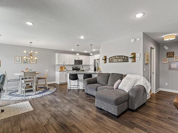 Welcome to the charming Towne Lakes community! This move-in-ready home is packed w/high-end finishes, making it an absolute gem. Enjoy hardwood flooring throughout the main floor, a cozy family room w/fireplace, and a stunning open-concept kitchen featuring granite countertops, a stylish backsplash, SS appliances and breakfast bar. Natural light floods the home, creating a bright & inviting setting. Primary suite has a large walk-in closet & private bath. All baths have tiled floors. Enjoy morning coffee on your welcoming front porch and summer grilling on your back patio. This beautiful home sits across the street from single-family homes and is just a short walk to the community pool and dog park. Other Towne Lakes' amenities incl: tennis & basketball courts, playgrounds, walking paths, lakes, a newly renovated clubhouse, and more. Zoned in ISD 728, or you can apply for open enrollment in the STMA District. STMA bussing available for a fee. Welcome home!