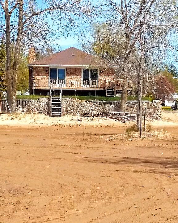 Beautiful fully furnished lakefront home built in 1984. Approx. 1300 SF. City sewer, water, and natural gas. Private sandy beach. No association or annual dues. 2019 home inspection available for review. Remodeled and newly furnished in 2019. 3 bedrooms. 2 bathrooms. Granite counters in kitchen. New refrigerator, dishwasher and microwave 2019. Marble vanity in main bathroom. Fireplace with new doors added in 2019. 4 ceiling fans. New full size stacked washer and dryer 2019. New natural gas furnace 2019. Forced air A/C unit.New Anderson glass patio doors 2019. Roof replaced 2016. One 2 car garage with additional large attached garage which could store up to 3 vehicles, snowmobiles, or jet skis. Shed. New exterior lighting 2019. Minimal exterior maintenance. Brick exterior siding. Let this turnkey home be your new paradise. Enjoy the breathtaking sunsets. Set high above the water leaves no worries of high water levels. Walking distance to town, pier, parks, festivals, fireworks, farmers market, and churches.Interior includes complete, tastefully furnished rooms. New lighting, lamps, most wall art, linens, bedding, guest towels, and beach towels. New 2 large flat screen TVs and 2 DVD players. Exterior includes 7 piece cushioned wicker patio/sunroom set, deck furniture, beach loungers, riding lawn mower, new mini garage refrigerator, and 2 new kayaks with life jackets. Just move in and start enjoying life. Ample exterior area to plant a perennial or vegetable garden or just let your creative juices flow with ideas. Interior showings by appointment only for potential buyers with pre-approval or proof of funds. Cash or conventional mortgage. Please no brokers or realtors.