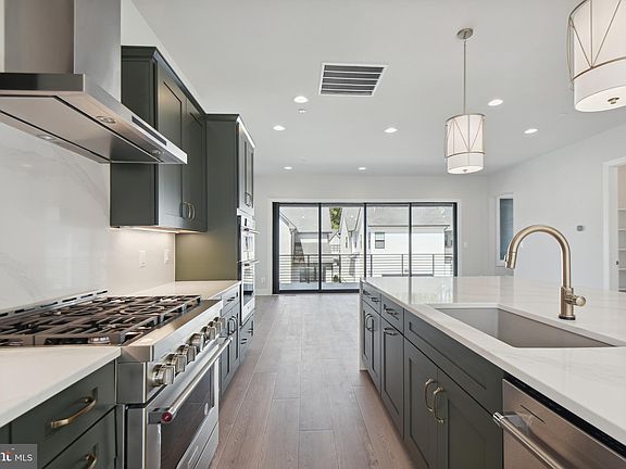 Stunning move in ready 4 level townhome with elevator and rooftop terrace! Entertaining is made easy with the open main level that offers a spacious dining room, stylish center kitchen, flex room that is the perfect for a home office, and a light-filled great room that opens to the covered outdoor living space. The Chef-inspired kitchen features Calacatta Gold quartz countertops, Foxhall Green cabinets, an enormous center island with waterfall, gilded bronze hardware, and KitchenAid stainless steel appliances. Upstairs boasts a sumptuous primary suite with huge walk-in closet and an upgraded primary bath with Admiral cabinets, Ariel quartz countertops, champagne bronze hardware, and separate soaking tub. The second level also has two large secondary bedrooms and a laundry room. Upstairs you’ll find a rooftop terrace that is the perfect entertainment space. The lower level is complete with a rec room and full bath.