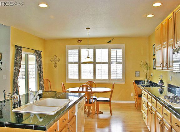 Absolutely gorgeous former show home 6 br plus office Dramatic entry coffered ceiling massive island kitchen with maple cabinets butler pantry granite tile beautiful hardwood floors gas cook top double oven formal and informal eating spacenew carpet massive open vaulted spaces functional loft large main floor master with en suite bath separate shower and jetted tub34x18 stamped covered patio GFAAC back yard adjacent to private open space