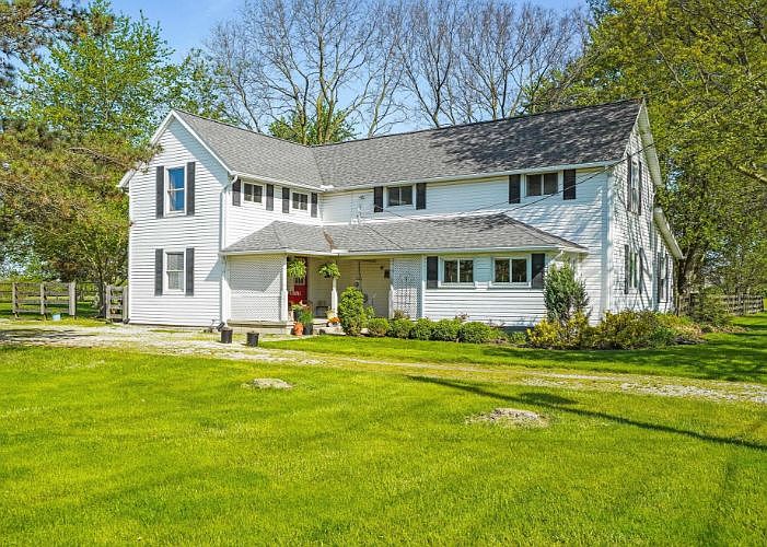 Updated and expanded 4 bedroom, 2.5 bath century farmhouse on 5.01 acres in SW Delaware Co. First floor has kitchen with granite counters and stainless steel appliances, large family room, 3 season room, laundry room, living room with nook, dining area, 1 bedroom and 1.5 baths. Upstairs is a wonderful owners suite with steam shower, 2 large closets and a dressing area; a private 3rd bedroom and a 4th bedroom loft area. HUGE fenced back yard with patio and deck. Property also includes original 56'x 28' barn with a 58'x 24' side shed, a 76'x 34' pole barn and a 48'x 13' back shed. Many more upgrades in Documents. Minutes to Delaware, Marysville, Dublin and Powell. Selling As-Is.
