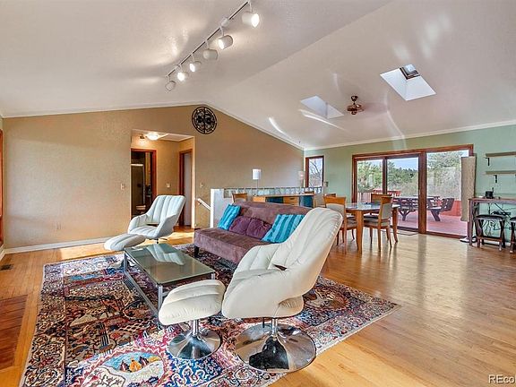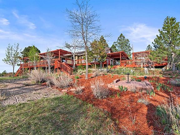 Mountain Views! 6 acres! Close in! Privacy! Peace and Quiet! Indoor/outdoor entertaining! This ranch-style home is located in the coveted Hidden Village neighborhood. Featuring 6 acres of views and privacy. Opportunities like this home don't come along often. Tons of space, several decks and pergolas, and endless possibilities with this home! Expansive windows, open concept, decks galore and opportunity to build a barn for your horses. Great potential horse property. The community riding arena is located just down the street. This ranch home has been updated with a modern/eclectic twist. 1000's of sq feet of deck to entertain friends and family. Enjoy the serenity of the multiple fountains and water features (brook). Also enjoy the numerous animals that come to visit (Fox, Deer, Turkey, etc...) Easy commute to Parker, The Denver Technology Center, and Downtown.