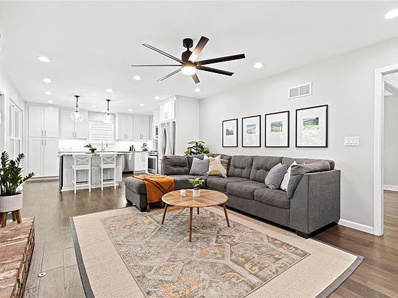 Be prepared to fall in LOVE with this stunning home, featuring FIVE finished levels of spacious living! Every inch has been thoughtfully upgraded, perfectly blending modern style with everyday comfort. As you enter, you'll be greeted by a transformed dining room showcasing a built-in buffet complete with custom shaker cabinetry and sleek granite countertops, a refined addition that’s perfect for entertaining! The dining area seamlessly flows into a modern kitchen, equipped with a deep apron sink, custom cabinetry with roll-out trays and soft-close hinges, large custom island with seating, and a built-in wine fridge. The cozy living room is one of many inviting spaces in the home, featuring a wood-burning fireplace to relax by. Throughout the main floor, you’ll appreciate the beauty of engineered hardwood floors! Upstairs, the master suite is a true retreat, featuring a private ensuite bathroom and a spacious walk-in closet with organizational shelving. Each bedroom offers generous space, ensuring comfort for everyone. With modern fixtures, smart lighting, and thoughtful conveniences throughout, no detail was overlooked. The spacious walk-out basement offers an additional entertainment area complete with a wet bar, making it ideal for gatherings. Step outside to enjoy the multi-level Trex deck, which provides a great view of the beautifully landscaped backyard, featuring river rock garden spaces and a cedar garden box. Located within the Shawnee Mission School district and just minutes from the convenience of Shawnee Mission Parkway shopping, this home is a must-see!