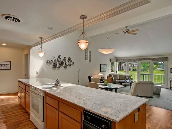 You'll love the golf course view from this stunning end-unit condo! Beautiful top floor home-completely updated-boasts vaulted ceilings, wrap around deck, lovely kitchen(granite counter tops w/full back splash/under cabinet lighting/updated cabinetry), great room w/gas fp & views. Master bdrm-access to deck, stunning bthrm remodel w/natural stone. On 3rd Fairway. 1 space in common gar + 1 carport sp.Storage galore. Security door. Complex w/new roof, new paint, new deck railing & deck surfaces.