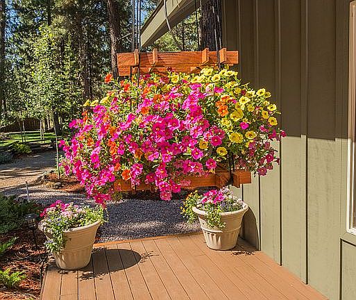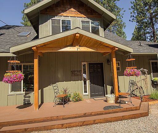 SOLD! An Entertainers delight! One of the featured homes in the Sisters 2017 Quilts in the Garden, Tour of Home and Gardens. Custom builders home. Major remodel finished in May of 2015. 4 bedrooms: Large master on the first floor. 3 ½ baths: Large master bath and half guest bath on the first floor. Completely new open concept kitchen finished in 2015 with custom knotty alder cabinets, granite countertops, huge island with seating, storage, and microwave. Gourmet Blue Star propane gas range and oven, custom tile backsplash, under cabinet lighting and plugs, super quiet Bosch dishwasher, LG refrigerator and hickory hardwood floors. Large drawers in the island to hold dishware (no more overhead reach to get to your dishes). First floor master bedroom with large windows for a view of the front and side gardens. Master bath with double sinks and quartz countertop. Large tile shower with seat and unique chain shower curtain. Laundry room is conveniently located between master bedroom and spacious walk in closet. Hang your clothes up right out of the dryer into the large walk in closet. Family room features a floor to ceiling Tibetan Slate gas fireplace with Blue Stone hearth and mantel. Beautiful private views of the landscaped backyard and the National Forest beyond. Step out onto the composite, covered deck made for entertaining with a bench swing, concrete top lighted bar that seats four and includes a built-in mini fridge to keep refreshments handy. Keep cool under the ceiling fan in the vaulted pine ceiling with recessed lights. Attached to the house above the huge 3 car garage are 2 vaulted ceiling bedrooms, full bath, craft area with abundant hickory cabinet storage and tiled countertops. Coffee/wine bar and stone gas fireplace complete the approx. 1,152 ft. amazing space. This is the perfect area be used for visitors during the many festival and shows in Sisters during the year, with a separate entry. The front room of the house is perfect for a quiet reading room/library. Enjoy the Lopi wood burning stove on those chilly days. Wood storage with a pine barn door under the stair well makes feeding the stove easy and less messy then bringing wood in through the house by bringing wood in through access from the outside. The loft area above the front room is a great place to watch TV, play games or view the front of the property accessed by the atrium door out to the small deck suspended by chain. Perfect for a cup of coffee in the mornings. The attached 3 car/10 foot ceiling height garage has plenty of storage with 5 hanging racks and extended third bay and a separate 9'X20' workshop with large built in safe, utility sink and built in work-bench. 4 Fenced yards: * The west side yard features a dedicated fenced garden area complete with a straw bale garden in full bloom with irrigation. Could be turned into a play area for kids. Lots of possibilities! *Main yard: The fully fenced northern backyard offers a basalt column bubbler to attract birds of all types. Warm up on chilly evening with the plumbed propane gas custom fire pit with log seats surrounded by a lovely green lawn with plenty of room for a game of corn-hole. Nibble on the raspberries trained on a trellis. * Separate northern fenced yard off the garage has a storage/wood shed and lean-to greenhouse with doggie doors to access from the garage. Perfect yard for the doggies! Blueberries and columbine grow in this area. * RV storage in a separate large fenced unfinished yard on the side east of the garage. Waiting for you to make it your own, pickleball court or small orchard??? Automated Irrigation is set up for the landscaping in the front and back yards. This unique house is a MUST SEE! Will cooperate with Brokers.
