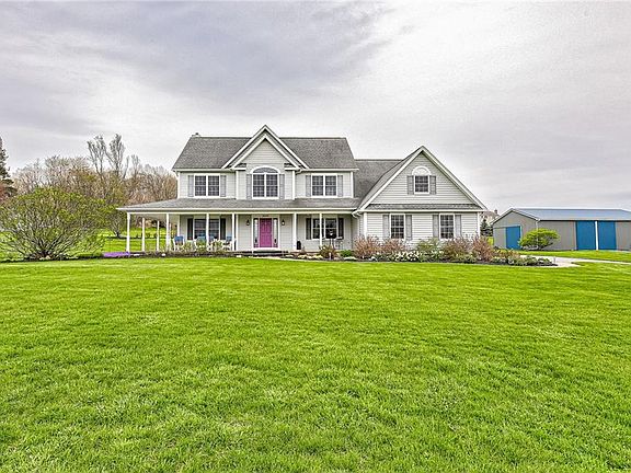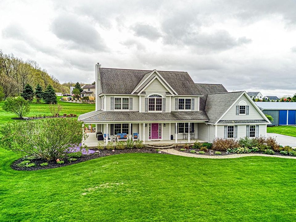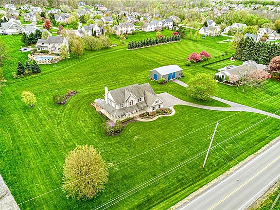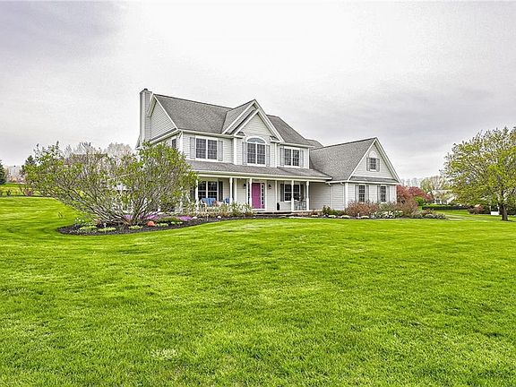 Spectacular setting on 2.3 Acres!! Come sit and relax on the 8' wide wrap-around porch! Step into the oversized foyer and 9' ceilings! Office to the left, could be 1st floor bedrm - fits 2 desks with tons of room to spare. Formal dining room with tray ceiling. Open layout for great room complete with gas log fireplace, dinette and kitchen with Amalfi hand-carved plank hardwood floors. Oversized breakfast bar has great work space. Tons of cabinets plus separate desk/coffee bar area! Mud room with 2 double closets and powder room. Loft area at top of stairs w/room to sit and expansive views of Cobblestone CC. Owner's bedrm has cathedral ceiling & huge walk in closet. Double sink vanity & tiled walk in shower w/2 shower heads! Bonus room could be 4th bed, plus a walk in attic off this room! Garage has large area for extra storage. Full Basement, very dry! Interlocking walkway to front door & across back w/large patio. Gazebo does not remain. Outbuilding is 30'X50' with a back area for more storage of 30'X15'. Separate entrance to outbuilding off driveway. This house, size of the rooms and amount of closet space will astound you!! 1st showings after 9am on 5/7, offers Tues 5/11 @10am.