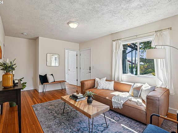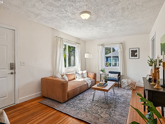 Welcome to this charming bungalow in the desirable St. Johns neighborhood. The front porch welcomes you into the living room that serves as the center gathering space of the home. There are two main level bedrooms, all with fir floors. The full bath offers a tub/shower combination, tile surround, LVP flooring, wainscoting and a convenient laundry schute that goes straight down to the basement. The kitchen has been recently updated and includes new counter tops, new stainless steel appliances, new sink, an eating nook, and gorgeous pine ceiling accents. Open the sliding barn door to step downstairs to the very spacious third bedroom with a walk-in closet and family room area, a separated laundry, and plenty of room to add a second bath if a buyer wanted to create a suite. The basement is wired for speakers. Relax and entertain in your backyard with a trellised garden bed, shaded privacy, and a 7 ft fence/gate that opens to access the gated parking pad. With a shared driveway, the one car garage and parking pad provides for two secure parking spaces. Bring your ideas for the newer shed, in creating an outdoor office, art studio, or other useful space. Just add electricity and it could be so many things. Home Improvement in 2023 include full roof on house and garage, exterior and interior paint, kitchen floors, stove, fridge, sink, countertops, bathroom floors, vanity, and toilet. Newer upgrades include all glass panels in main floor windows, 50 amp service to garage, and all plumbing to PEX. Uber convenient to groceries, cafes, coffee, schools, and mass transportation, this home will make someone very happy. [Home Energy Score = 5. HES Report at https://rpt.greenbuildingregistry.com/hes/OR10232620]