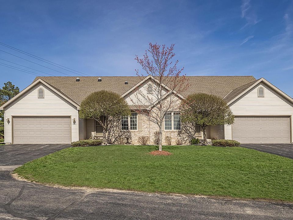 Beautifully maintained 2 bed 2 bath Ranch style condo at the end of a cul de sac. Family room with gas fireplace, cathedral ceilings and skylights, Kitchen with pantry, breakfast bar and dinette with door leading to patio. Spacious Master suite with walk in closet. 2nd bedroom, bath with safe step in shower and first floor laundry. Beautiful professionally finished lower level with lots of storage is pre-plumbed for a future 1/2 bath. Hurry this one won't last long.