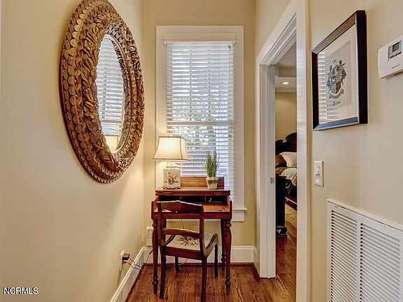 Incredible opportunity to live in the small, tranquil, friendly & sought-after waterfront community of Demarest Landing on Howe Creek, surrounded by an abundance of trees, nature trails, ponds & fountains. Slow down the pace & enjoy kayaking/paddle boarding to the ICW, catch a fish from the dock, or play a game of tennis before relaxing at the pool. This lovely & spacious home will fit almost any lifestyle, and 10' ceilings & wide crown molding will be appreciated by all. Wood floors greet you at the front door & continue throughout the first floor into formal & informal areas. Create masterpieces in your gourmet Kitchen with 5 burner Kenmore Elite gas range, 2 ovens, walk-in pantry & granite counters that opens to an eating area with an ice maker & beverage refrigerator, and a generous Great Room with cozy fireplace & built-in shelving. Whether entertaining friends or hosting family, this home lends itself to gathering whether inside or out. One of your favorite places to relax will be the magnificent screened porch overlooking the lush & private backyard. Or sip lemonade on your delightful front porch as you enjoy the tranquility that surrounds you. Your first floor Master Suite is complete with whirlpool tub, separate shower, 2 vanities, large walk-in closet, trey ceiling, and a door to a sitting area/office/den/study and enclosed porch. Upstairs you'll find 2 bedrooms, 2 en-suite bathrooms, and a den that's ideal for a play/gathering/exercise/bed/meditation room. And it gets better! The 709 sf living space above detached 3 car garage includes a bedroom, full bathroom & sitting room that allows privacy for owners & guests. Other special features include central vac, dehumidifier in sealed crawlspace, large laundry room with sink, and a home warranty. Community gatherings make it easy to meet your neighbors. Andy you're just around the corner from Mayfaire, beautiful Wrightsville Beach, marinas, Ogden Elementary School, and another bonus is no city taxes!