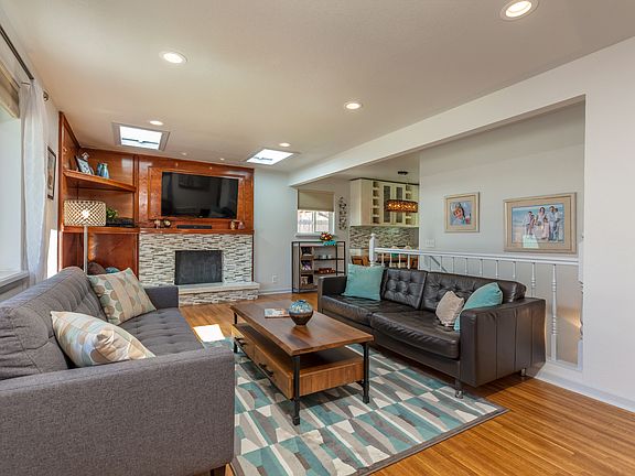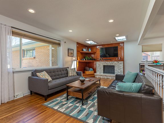 Exceptional brick ranch in Littleton?s Maple Ridge community! This remarkable home offers four bedrooms, three bathrooms, a beautifully finished basement, and modern updates throughout. Newly refinished hardwood floors grace the entire main level. A gorgeous, mosaic tile-surround fireplace and custom built-in shelving details the open and bright living room. At the heart of the home, the impressive kitchen has been completely updated. Highlighted by modern, shaker-style cabinetry, slab quartz countertops, mosaic tile backsplash, all new stainless steel appliances including a double oven, and adjoining dining space with built-in wine storage and elegant pendant lighting. Expansive master suite with two closets, one is a walk-in, and a full en suite bath. A secondary bedroom and full hall bathroom complete the main level. Featuring all new windows and carpet, the finished basement offers a wonderful place to spread out. The large rec room maintains a mosaic tile-surround fireplace and plenty of room. Also encompassed in the basement are two secondary bedrooms, the third bathroom, and ample storage. Entertain with ease in the spacious, park-like backyard with lush grass, a sizable covered patio, and a privacy fence. Convenient attached two-car garage. Recently expanded and rewired electrical panel (2017). Great location, close to Highline Canal Trail, Littles Creek Park, the Denver Tech Center, and easy access to C-470!