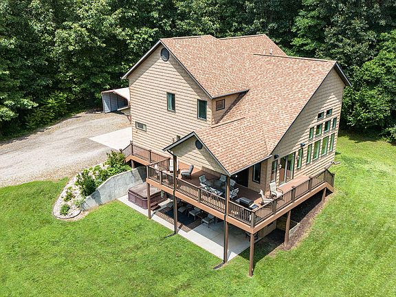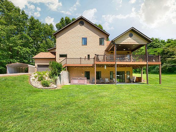 This home has an amazing setting, in the county, on a 5 acre lot, and located close to all the amenities you might need. The natural light is amazing in every room. Perfect for entertaining or relaxing with a view. Home features a finished walk out basement with exterior hot tub, propane fire place in living room, geothermal heat and AC, open concept kitchen with granite counter tops, newly finished basement, exercise room, main floor living and balcony overlooking the back yard. There is also a fenced in area for goats and chickens. Very efficient home. Owners use approx. $600 of propane a year for the fireplace and range. Midwest Electric & Communications provides fiber internet and electric for approx. $300 a month.