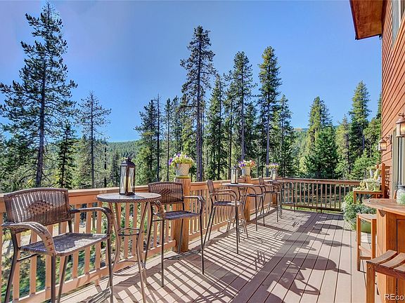 When you think of Mountain living, this is the home that comes to mind. Newer built home in a private, quiet setting with extensive decks and patios to enjoy all year around. Gleaming hardwood floors, great room style, vaulted ceilings with a main floor master bedroom suite and a 5-piece master bathroom. The open kitchen is beautifully appointed, featuring bull nosed corners, slab granite counter tops, Hickory cabinets & gas range. Craftsman quality throughout from the woodwork, trim and cabinets to the railings that lead up the stairs where you will find the secondary bedrooms and a full Jack and Jill bathroom. There are comfortable living spaces on each floor including the loft overlooking the great room. The walkout lower level is perfect for watching football, warmed by a gas burning fireplace. There is also an extra bonus room or office and a ¾ bathroom. The roads are county maintained with easy access to our amazing Mountain community and everything Evergreen has to offer.