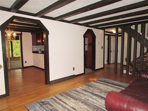 Unique & Spacious home in Plum’s Holiday Park Area. Large Living Rm has a Beautiful Electric Fireplace, Beamed Ceilings & Hardwood Floor. Beams & Hardwood flow into the Dining Rm, where you will find Newer Pella Sliders to a Huge Screened Porch w/ Trex Floor. Here you can Entertain Guests, or just relax & enjoy the views of Nature. Dining Rm Opens to an Updated Kitchen, featuring Cherry Cabinets, SS Appliances, Glass Backsplash, Granite Counters, Pantry w/ Sliding Shelves, Ceramic Flooring & a Tubular Skylight. Ceramic Floor & Lovely Ceramic Walls & Glass Tile is found in the Updated Bath, accessible from the Master BedRm. 3 of 4 BedRms have exposed Hardwood Floors. 2 More Skylights on the 2nd Floor. You'll Love the Large Family Rm w/ Pellet Stove & Lrg Closets. Laundry Incl. Washer & Dryer. Level Back Yard w/ Stone Patio. Extra Wide Driveway. New Vinyl Siding on Front of the House. Many Rooms were just Painted. Convenient Location, Close to Shopping and Major Roadways. Home Warranty.