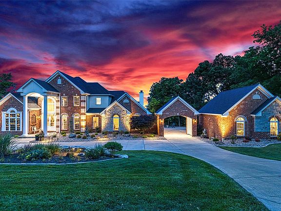 Spectacular 7200 sf brick & stone 1.5 Sty in prestigious Whitmoor Country Club. Situated on a premium 1.5-ac lot overlooking the Missouri River Valley. Dramatic 2-sty entry foyer leads to private study with custom built-ins, formal dining room & stunning great room with cast stone fireplace & 2-sty bow window that offers unsurpassed vista views. Designer-inspired kitchen with white cabinetry, quartzite countertops, Dacor appliances & 7’ x 6’ center island adjoins light-filled breakfast room & vaulted hearth room highlighted by floor-to-ceiling fireplace. Spacious primary bedroom suite with beautifully appointed bath with shower spa & jetted tub provides a relaxing retreat. T-staircase accesses 3 additional bedrooms, 1 with ensuite bath & 2 with Jack n’ Jill bath. Lower Level entertainment space includes recreation room with stone fireplace, gathering bar & media room plus 5th bedroom & full bath. Professionally landscaped grounds with 2 decks, hot tub, porte cochere & 2 2-car garages.